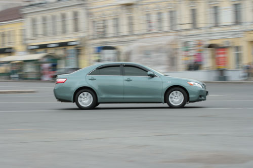 Когда дошли до мест быстрого движения машин, я начал на них фотоохотиться. Издалека прицеливаюсь, веду цель и, когда машина приближается, делаю кадр. Немного пощелкал – нифига не получается, задний план размывается только за счет глубины резкости. Жалуюсь жене, она говорит: “Поставь выдержку 1/50”.