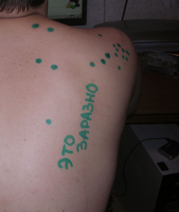 Моя женушка, вдохновленная идеей противоугонной системы совсем распоясалась. Сегодня, пока я, ничего не подозревая, сидел себе в интернете, она создала еще один образец намужней живописи: