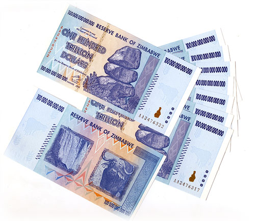 Огромные темпы инфляции в Зимбабве подняли чувство юмора зимбабвийцев на небывалые высоты, а ценность денег опустили в небывалые низины. Валюту просто отменили, когда стоимость денег стала меньше стоимости бумаги. Зато теперь в мире есть много оригинальных сувениров, продавцы которых утверждают, что помогают бедным африканским жителям. И каждый может сумасбродствовать новым доселе невиданным способом, становясь квадриллионером.