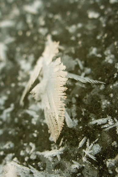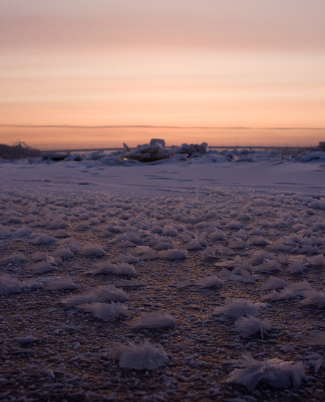 Имеющиеся ровные кусочки льда почему-то покрылись какой-то морозной бородой: