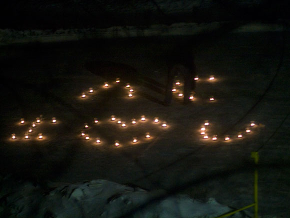 Непонятно, кто такая эта Л.С., но, по-моему, он ее любит. :) Дрожащие на ветру свечки вживую выглядят лучше, чем на картинке.