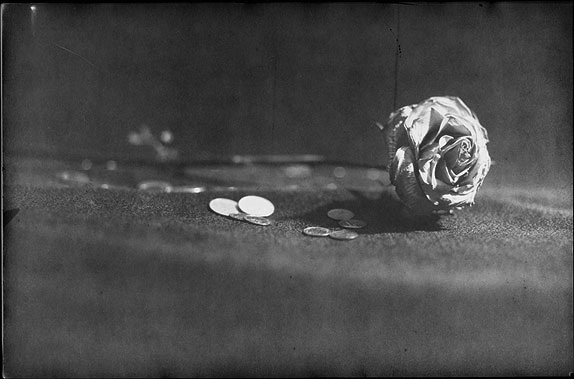 Бормашинкой с алмазным отрезным кругом я подточил стекла для второй кассеты, поэтому на этот раз у меня в запасе было целых четыре кадра. Но уже после первого кадра оказалось, что я абсолютно не представляю, где у меня использованный лист, а где чистые. Медитация и техники самогипноза позволили вспомнить, на какую кассету я снимал (они цветом отличаются, к счастью), а вот какую сторону использовал так и осталось загадкой (дома все стороны кассет подписали). Сделанный кадр было жалко, поэтому в парке сняли только три кадра, а один пустой лист утащили домой. При проявке лист с фото попался первым, поэтому последний кадр тоже не пропал. Женушка на него сняла чудесный натюрморт: