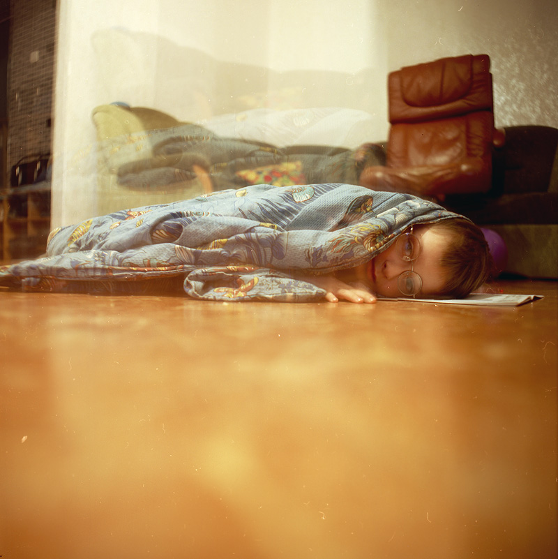 Редко публикую семейные фотографии, но этот кадр выложу. Антона фотографировать трудно, так как он в обычном своём состоянии похож на элементарную частицу: находится одновременно сразу в нескольких местах, движется на околосветовых скоростях и вообще имеет волновой характер. Но тут он приболел, а у меня в руках оказалась старая наполовину сломанная камера, с которой я как раз возился: