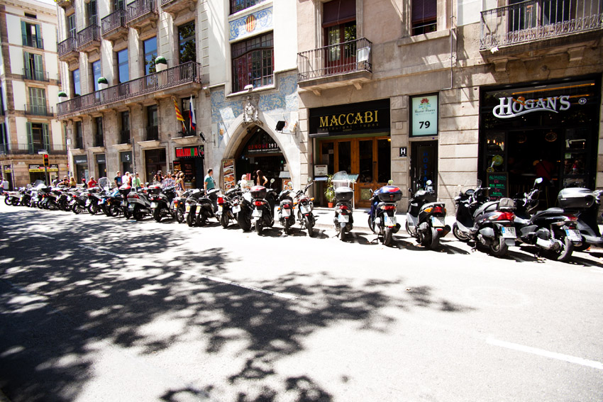 Использование мототехники поощряется, много бесплатных и удобных парковок. Не понимаю идеи пересадить автомобилистов на велосипеды, а вот идею пересесть на мотоциклы вполне понимаю. Только климат надо без зимы. И идеальные дороги, как в Испании.Мотоциклисты в защите встречаются редко, но шлемы на всех.