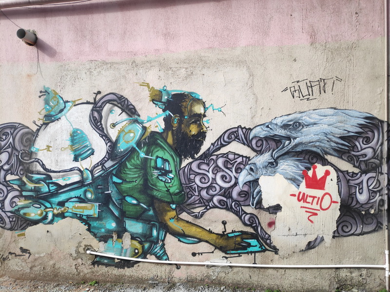 А ещё мне понравился местный стиль “Серого граффити”, когда работы кажутся прямо частью местных старых потрёпанных временем стен: