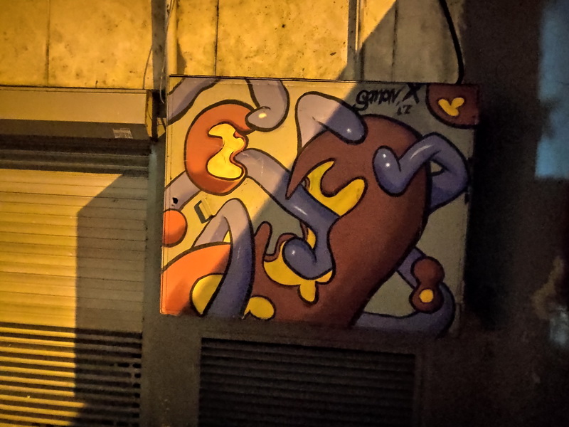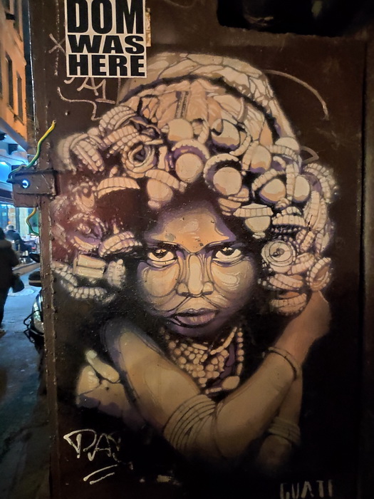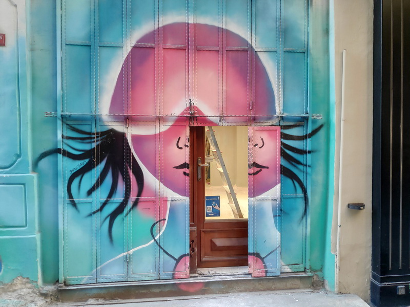 А ещё мне здесь приглянулась манера писать арт вокруг двери так, что когда дверь открывается, получается новый арт: