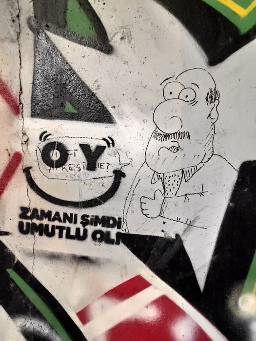 В других местах граффити просто исчезают. Не знаю, с чем это связано, но на Бююкаде оба имеющихся граффити уложились в один кадр: