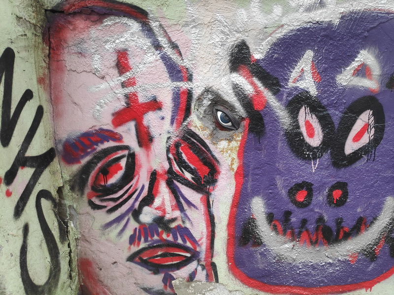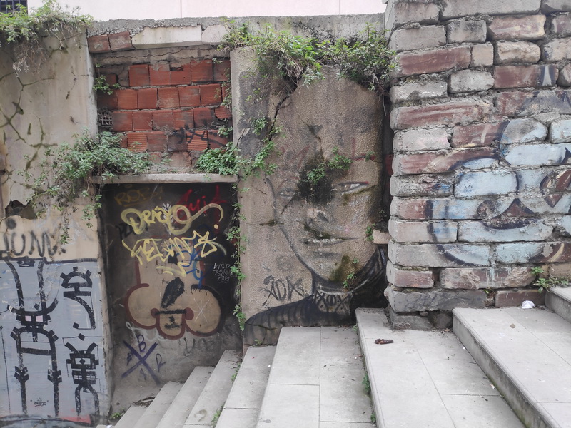 А здесь на стене, заполненной граффити, притаился небольшой барельеф, который я заметил совсем не сразу: