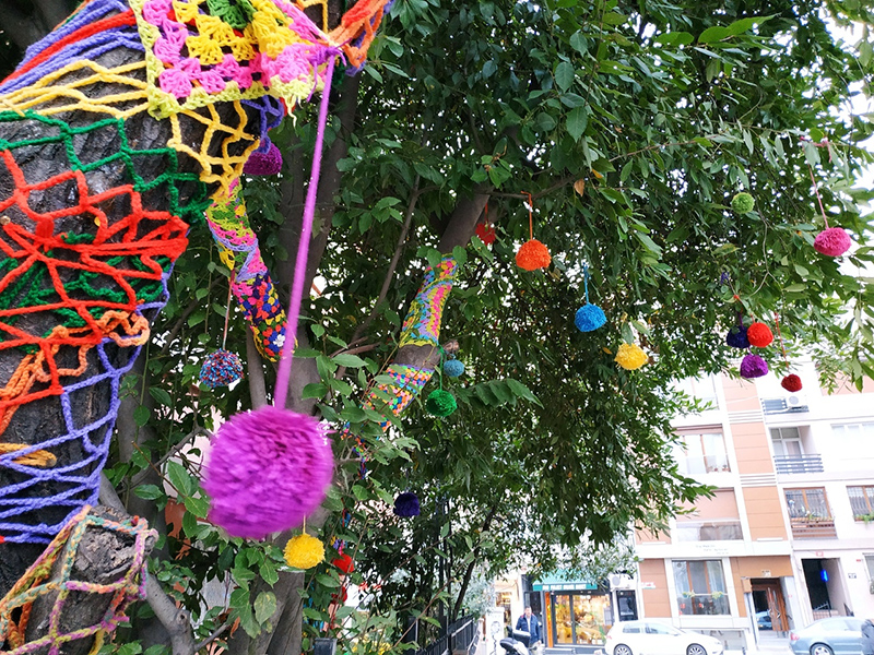 А в районе Мода отметились последователи нового направления “Ярнбомбинг”: